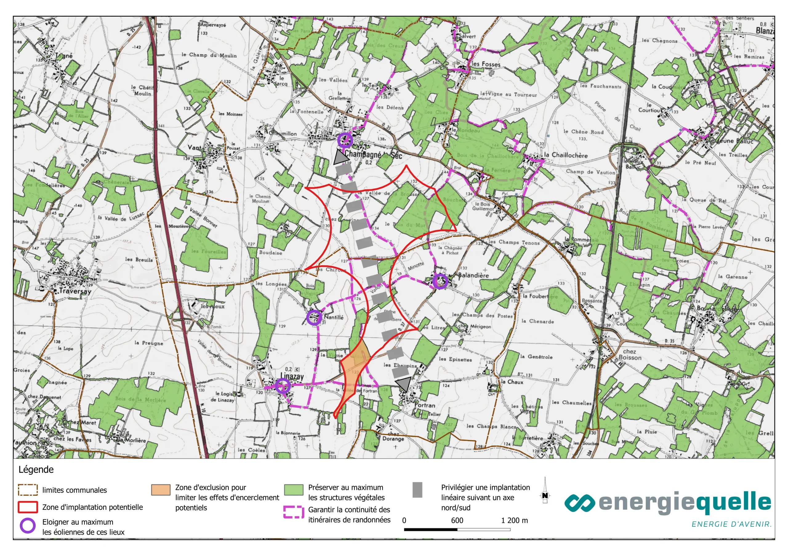 - Eloigner au maximum les éoliennes des bourgs de Champagné-le-Sec et Linazay ainsi que des hameaux de Nantillé et La Balandière ;